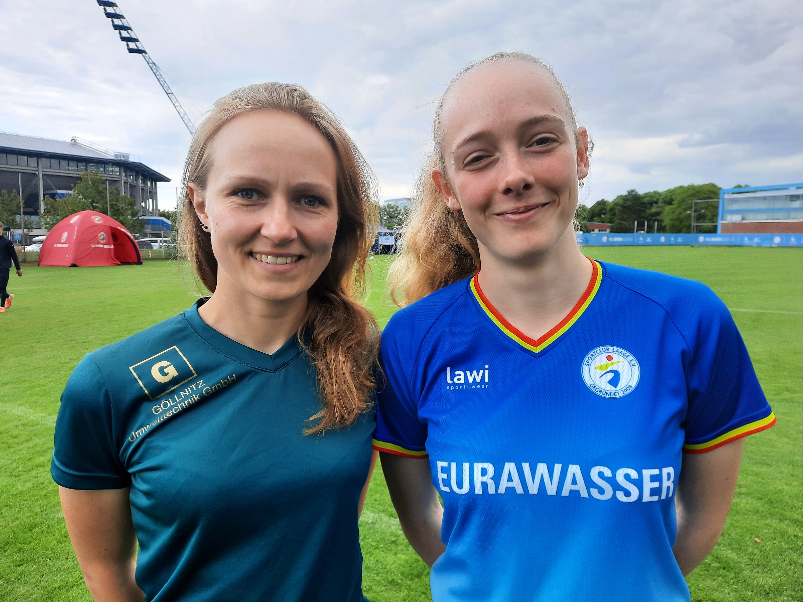 Das Foto zeigt die Natur -und Umweltschutzbeauftragte des SC Laage, Sarah Liesegang, und die Jugendwartin des Vereins, Juliane Göllnitz (re.). Foto: André Stache