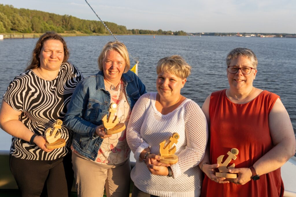 Auch das Laager Helferteam (v.l. Carmen, Christine, Michaela und Grit) wurden mit rustikalen Holz-Ankern geehrt. Foto: Ralf Sawacki